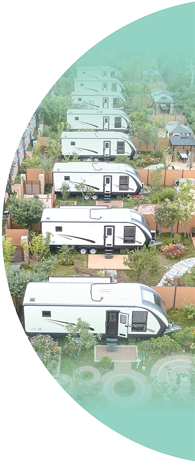 陕西西安外环高速公路子午服务区是一座开放式文旅休闲运动主题服务区。田园采摘、休闲运动、科技体验……服务区内既像商场又像景区。图为西安子午服务区内设施齐全的房车营地。人民网记者 翁奇羽摄